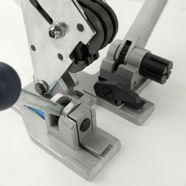 Стрепинг  ленту устанавливают в зажим, второй край упаковочной ленты продевают под нож и протяжной механизм.