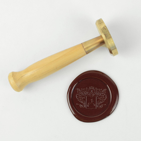 Печать состоит из латунной оснастки и ручки. Ручка выполнена из дерева (бук).